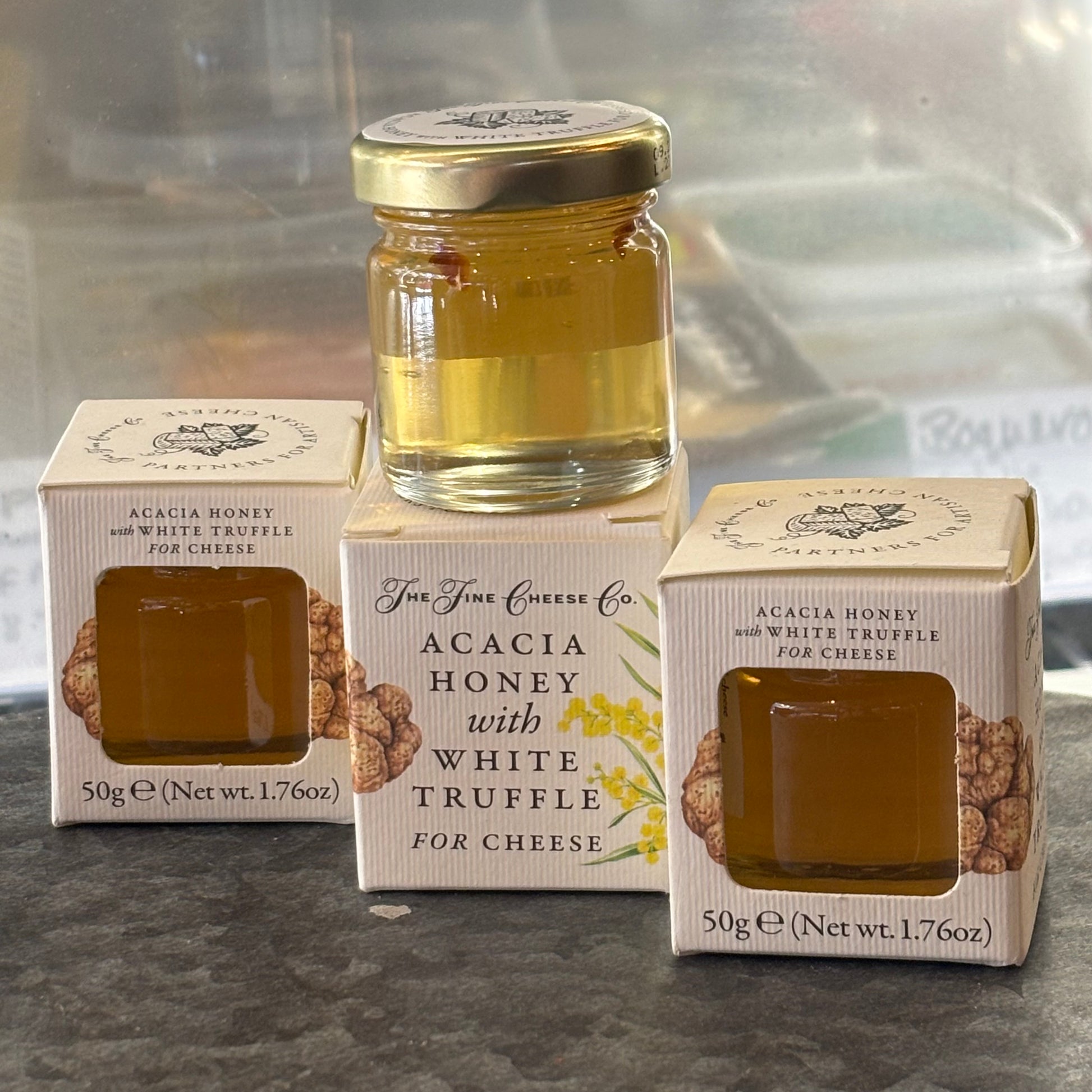 The finest white alba truffles from Piedmont, Italy, infused in local acacia honey. Drizzle over nuggets of Parmesan Reggiano and Pecorino, or a soft young Gorgonzola as the Italians do. 50g.