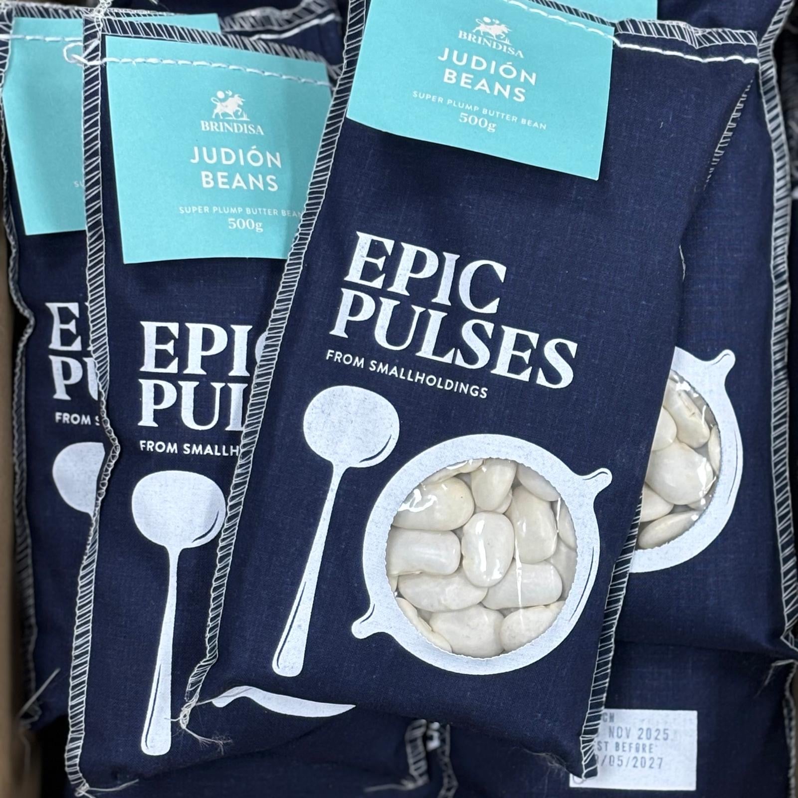 Dry butter beans packed in a cloth sack. Large, highly absorbent white beans with a thin skin and a soft, melting texture. They are highly versatile, and are excellent in both hot and cold dishes. Use these Judion beans to prepare a crab and butter beans stew. If you're looking for a cold dish, go for a charred octopus, piquillo peppers and butter bean salad. 500g.