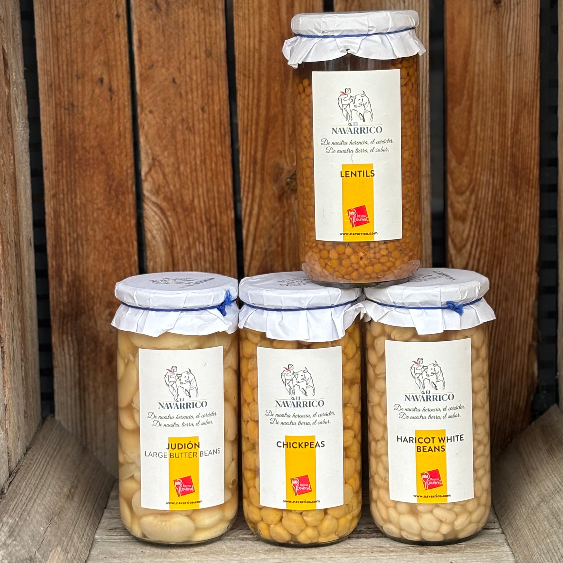 Based in San Adrian, Navarra, one of the most fertile regions in Spain, El Navarrico are a specialist processor of pulses, vegetables and fruit. The lentils are exceptionally versatile and can be used with equal confidence in slow cooked hot dishes or in salads with a vinaigrette. Judión beans are soft, buttery and creamy and can be turned into a smooth puree, used in salads or added late to a slow cooked meat dish. The chickpeas are remarkably versatile and ideal for casseroles, in salads or to make hummus. Haricot are creamy and melting which makes them perfect for use in casseroles, salads, dips or side dishes. These are excellent products if you want to make real fast food. 700g.