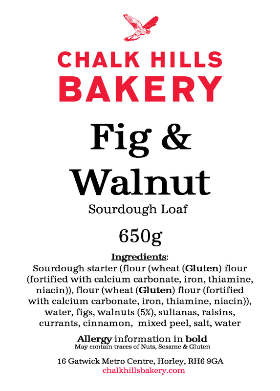A deep brown Sourdough loaf, enhanced with figs and walnuts. 650g.