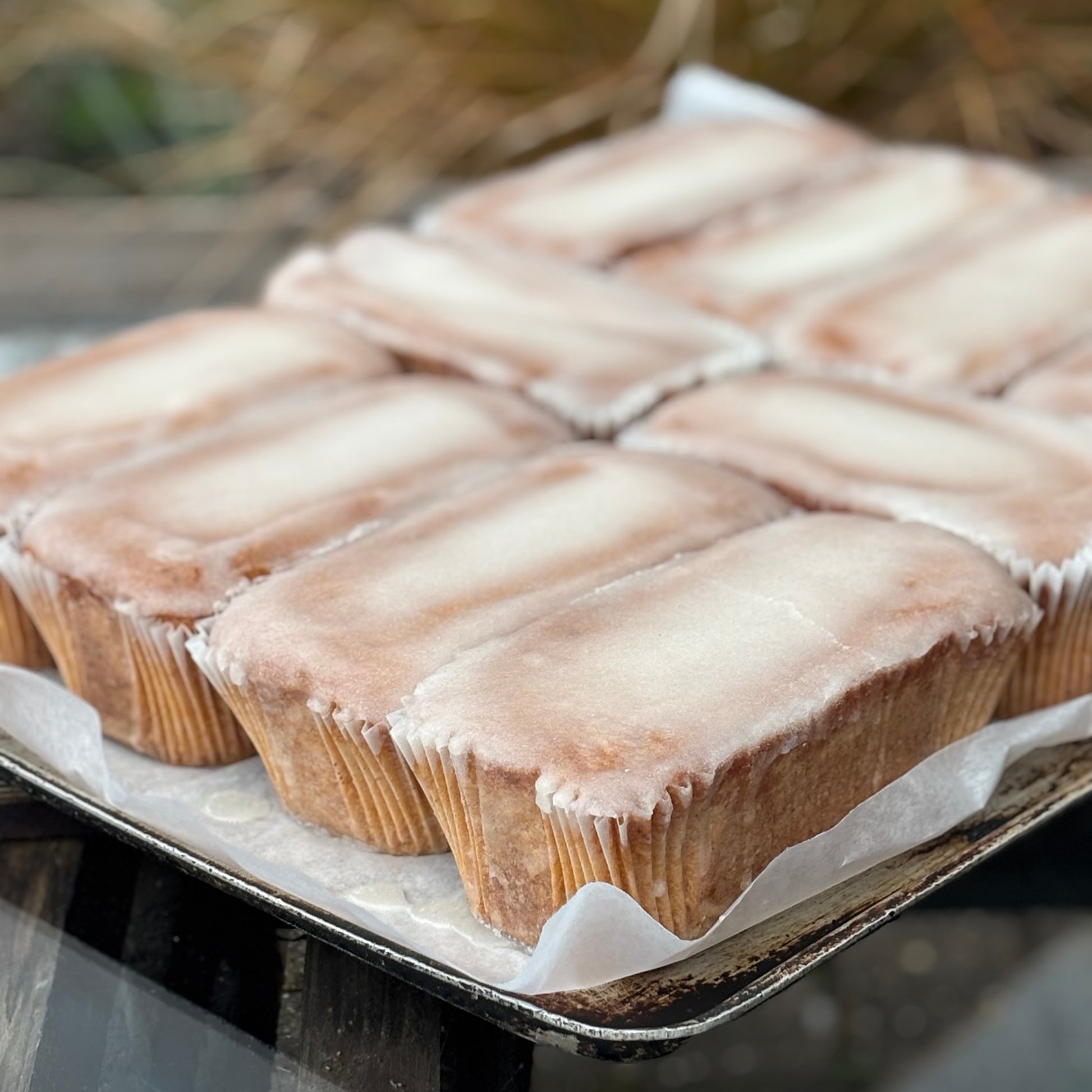 A classic lemon drizzle cake. A fluffy sponge with a crunchy lemon sugar topping.