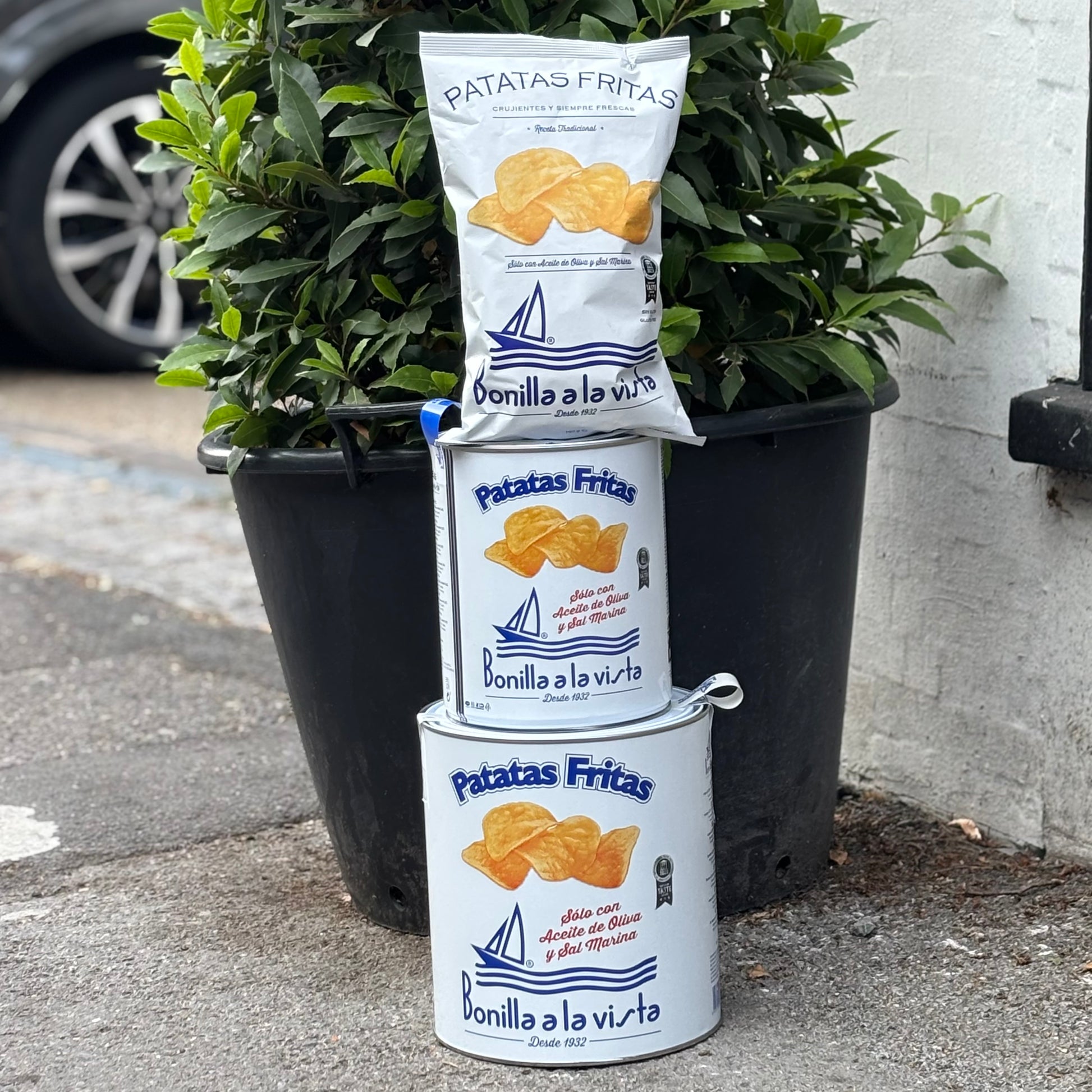 Bonilla a La Vista olive oil and sea salt crisps. Delicious, crunchy crisps produced in Spain, in a gorgeous tin. The art of crisp making has been the daily commitment for three generations of the Bonilla family since 1932. They have dedicate their body and souls into making the best crisps money can buy, finessing even the smallest of details to create absolute perfection. Great for parties or a gift for your crisp loving friends!