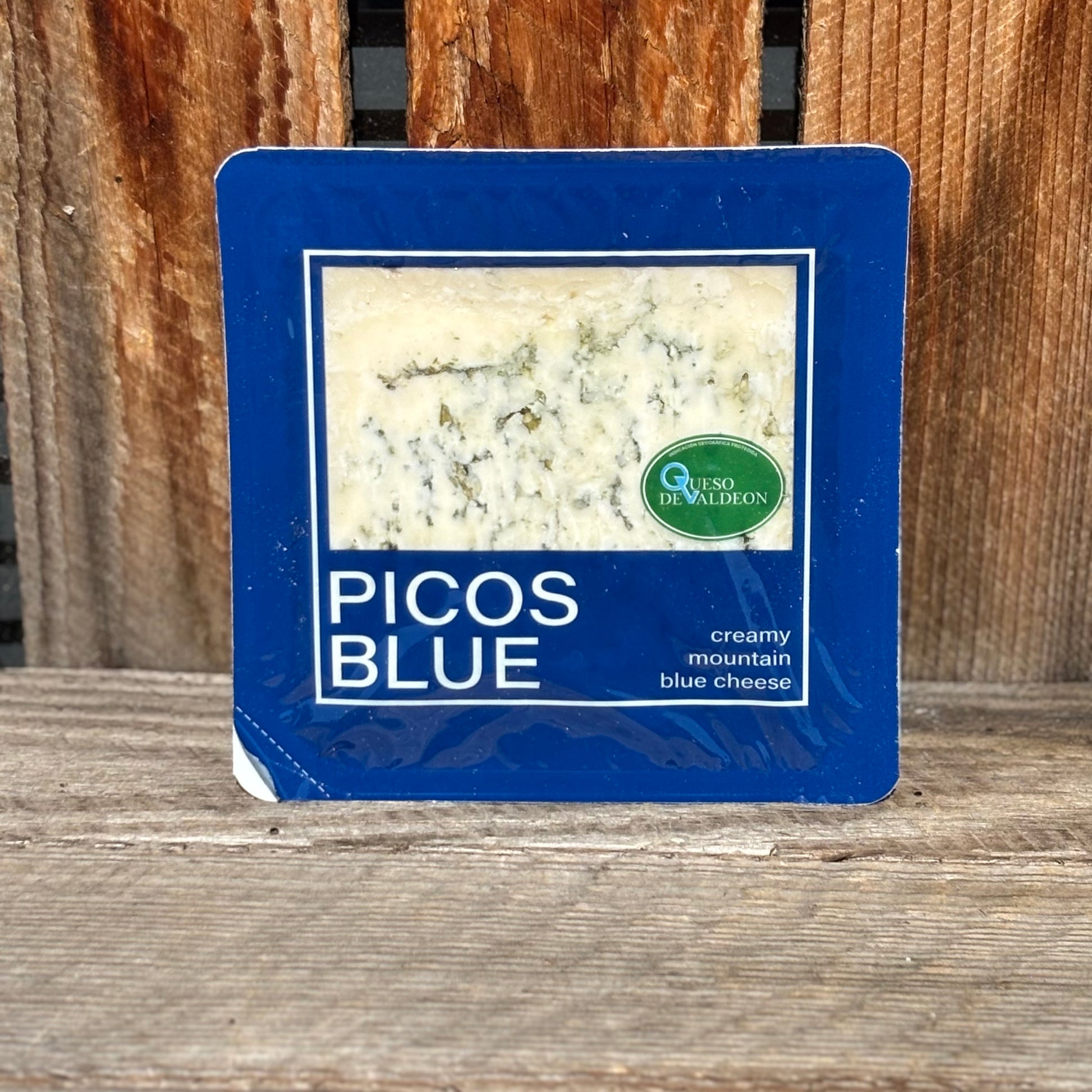 Tangy with a creamy, buttery texture. Mountain blue cheese wrapped in maple leaves. The Valdeón Picos Blue is a pasteurised blue cheese made from a blend of approximately 90% cows' and 10% goats' milk, and animal rennet. The Picos Blue is a semi soft blue cheese created in the Picos de Europa mountains of northern Spain. Bold and salty, the uniqueness of this cheese lies in the manufacturing process. This includes a long maturing in cold, damp cellars to produce a granular texture and blue mould filled cavities. Similar to Roquefort, with an equally powerful aroma. It is delicious by itself , as part of a classic Spanish cheese board, or used in salads, stuffings, quiches, with red meat, on toasts, and in dips and sauces. It is also a great cooking cheese with a nice melty texture. 100g.
