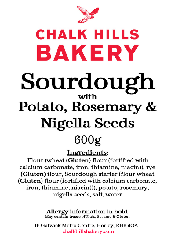 Sourdough with Potato, Rosemary & Nigella Seeds. 600g.