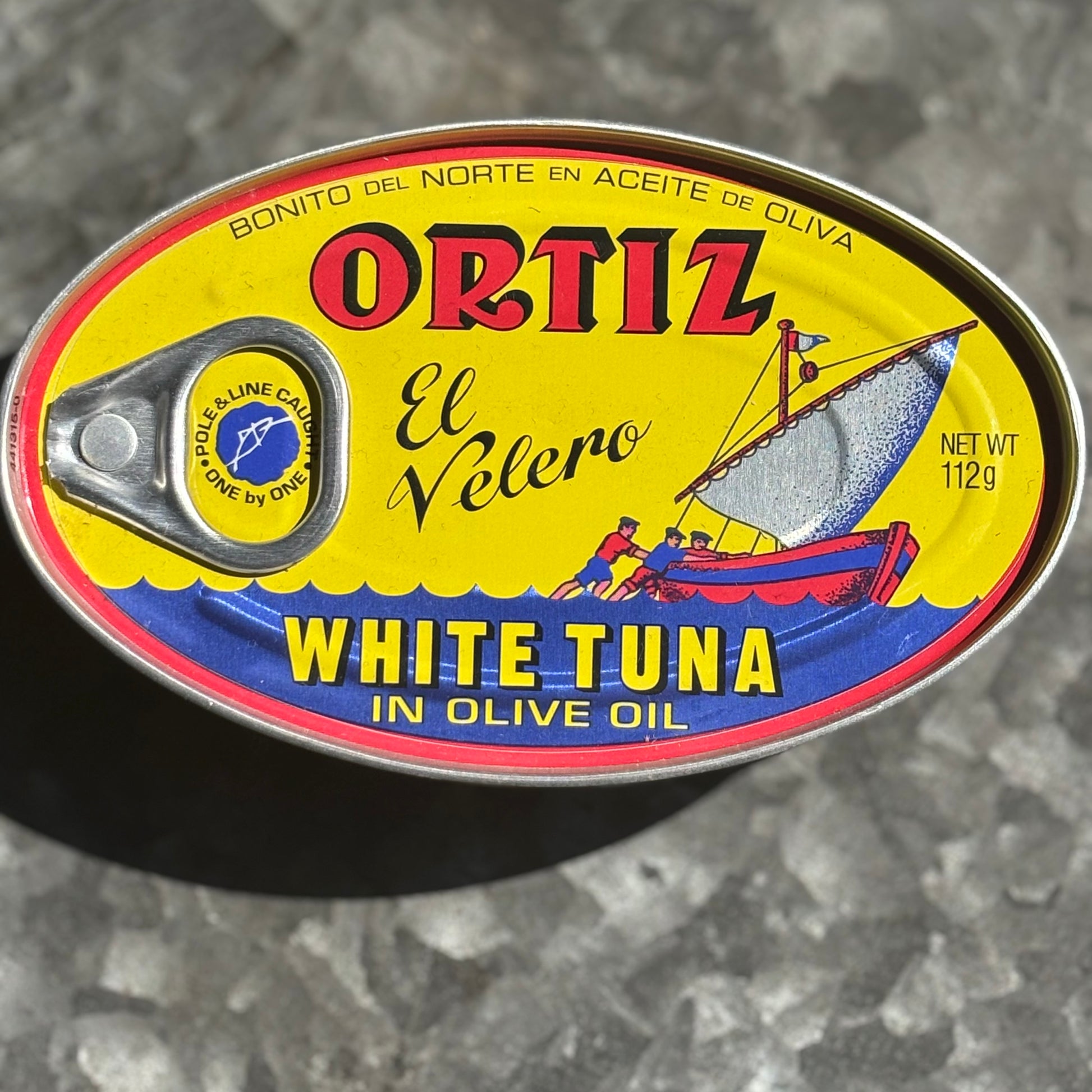 Elegant fish flavour. Ortiz white (Bonito del Norte) tuna, Thunnus alalunga, is a smallish tuna generally weighing less than 20kg. All of the fish that Ortiz buy is caught on rod and line in the Bay of Biscay and then processed by hand. The flesh is a pale colour and has a delicate flavour that is at its best when eaten simply, in a salad for example. 112g.